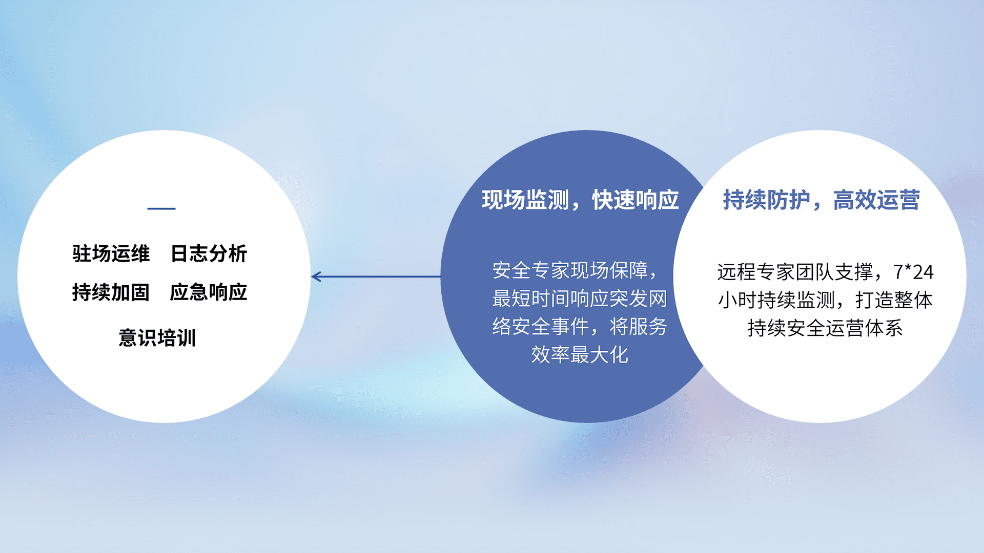 针对客户行业特性,,,,提供专属的一站式安全管理服务,,,,帮助客户全面感知网络空间威胁,,通过安全专家的线上、、、、线下防护支持,,,,实现风险闭环,,,将安全保障常态化,,,为客户打造常态化安全运维运营服务。。。